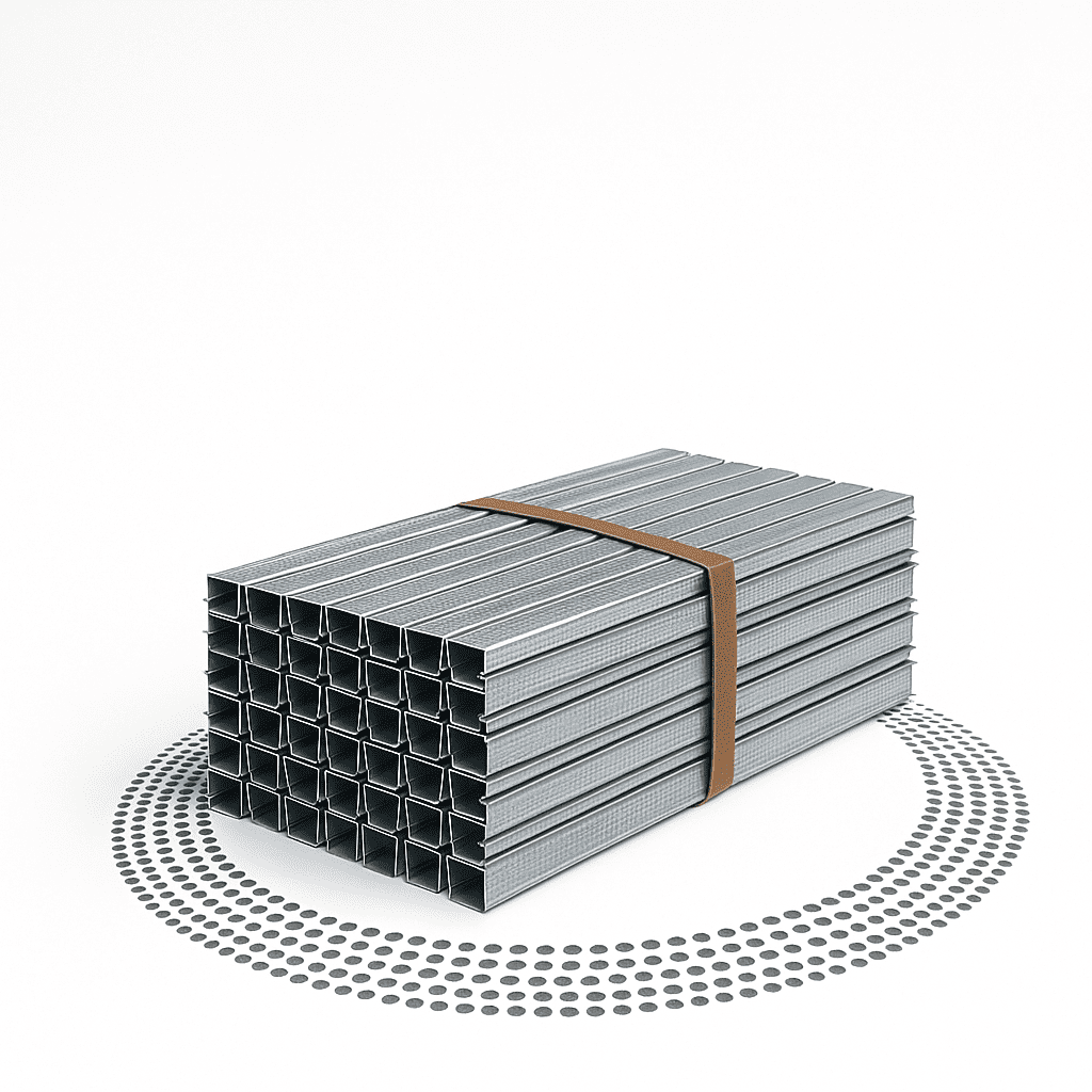 18–25 ga galvanised studs, track and angles from Bailey Metal Products and DCM. We bundle floor packs, custom-cut on request, and boom them directly to slab edge—no curb drops, no wasted labour.